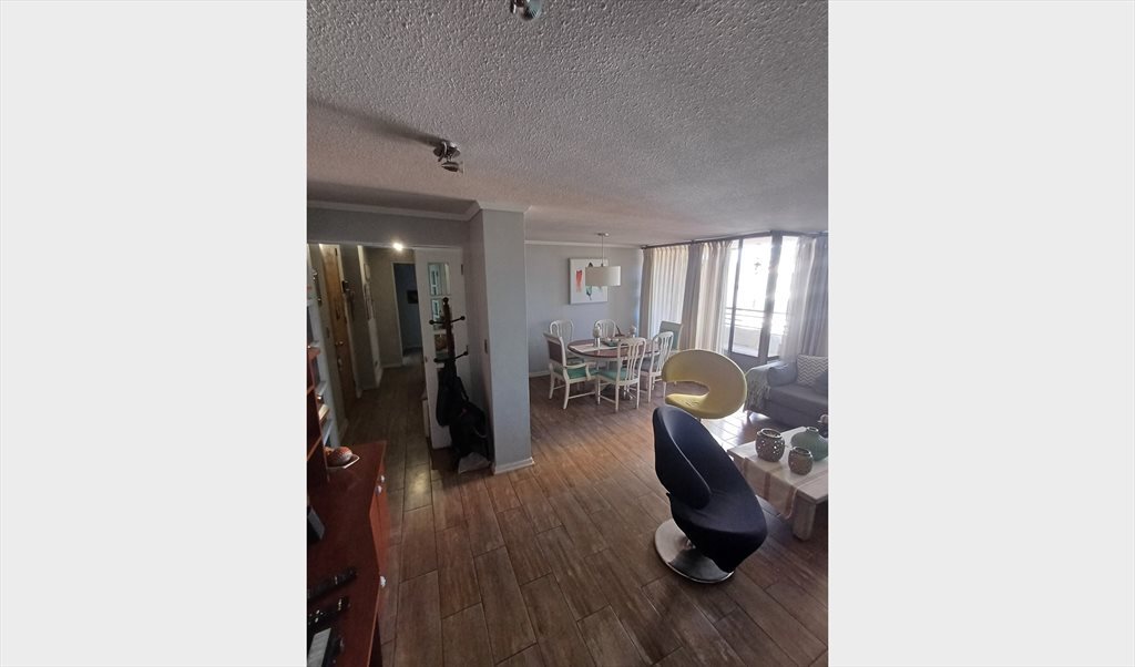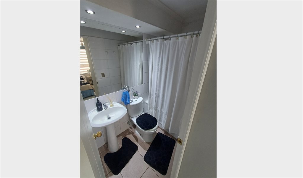 Habitación en amplio dpto, piso 12 , condominio con amplias zonas verdes, piscinas, gym, muy seguro y cerca de supermercados, mall, acceso a transporte. Familia de 2 estudiantes y mamá profesional trabajadora.