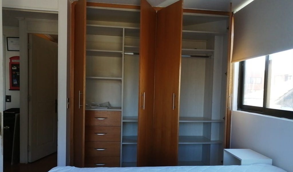 Arriendo de habitacion amoblada amplia, incluye: cama 2 plazas con veladores , rack con TV 32'', closet de pared y baño privado, en Depto con vista al Mar. Sector recidencial Playa Amarilla, cuenta con estacionamiento y asensor, Con Con. Insta danilofaceone
