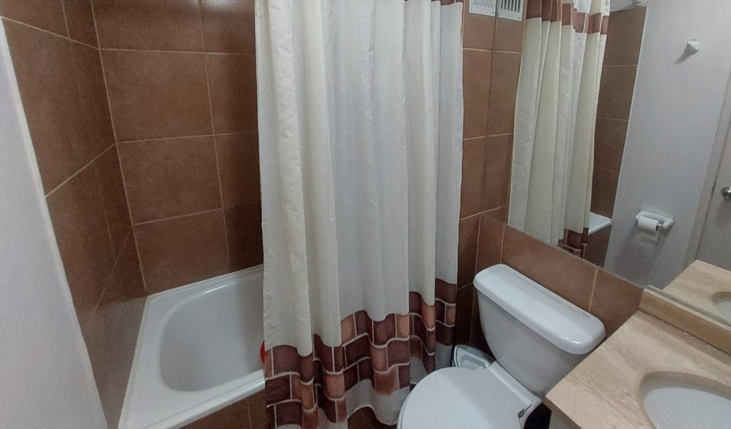 Arriendo de habitación individual amoblado con baño privado en un departamento nuevo en el décimo piso, ubicada en condominio cerrado, seguridad las 24 horas.