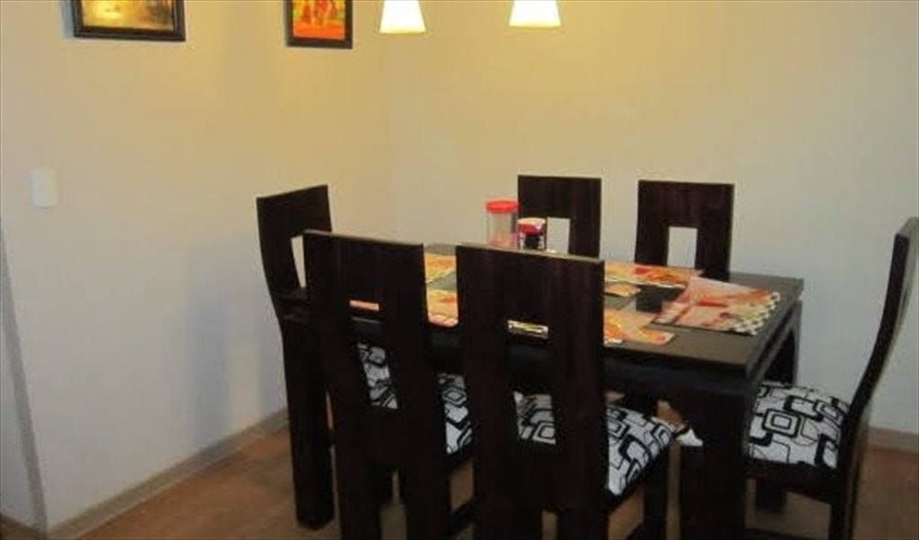 Características del departamento: 3 habitaciones, 2 baños, terraza con buena vista, logia, Living, sofá, comedor amueblado e iluminado, cocina tradicional cerrada y equipada, vajilla completa, refrigerador, microondas. Cada persona tiene asignado en la cocina su propio lugar privado de dispensas, también cuenta con estacionamiento de visita.
