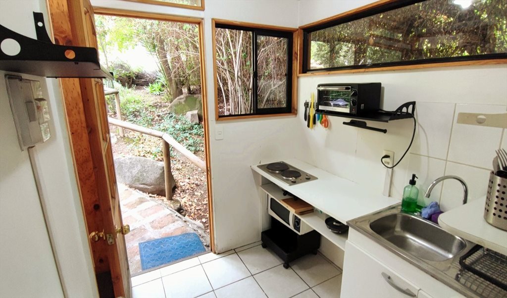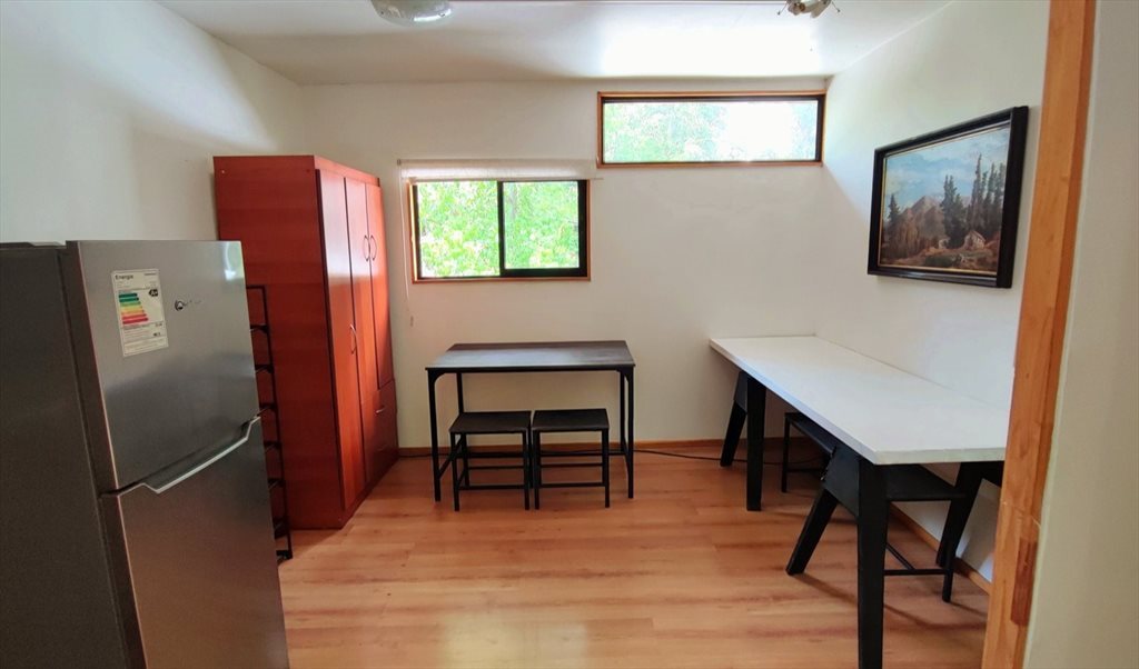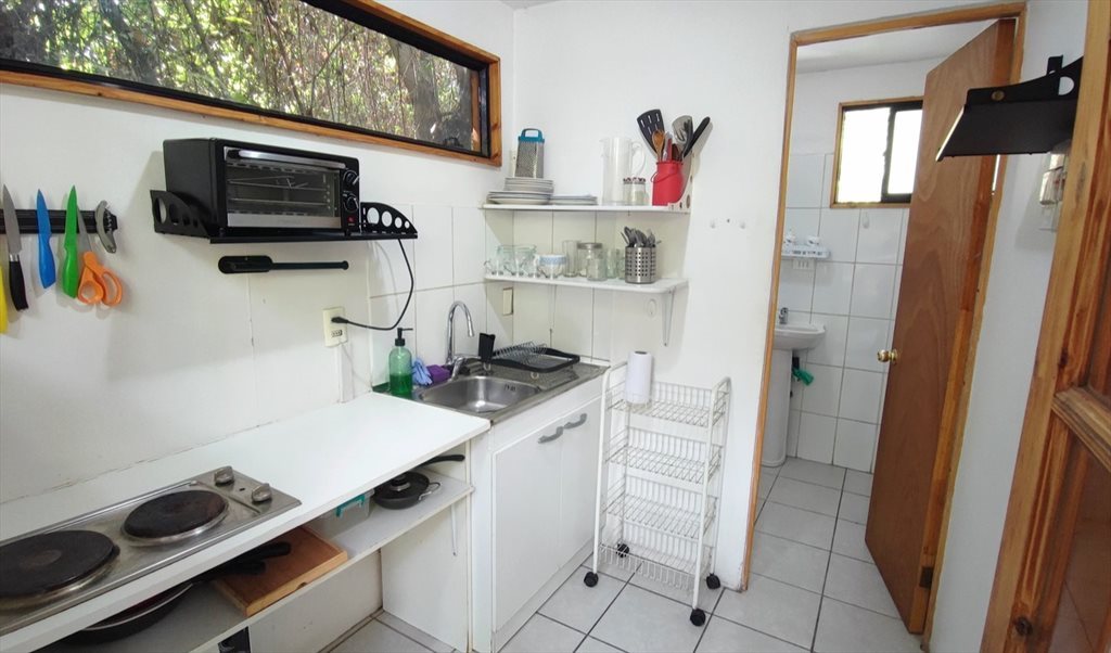 Se arrienda casita independiente amoblada para 2 personas, con 2 habitaciones: un dormitorio con 2 camas 1 plaza, closet y una sala de trabajo con escritorio mesa de comedor y armario ,cocina equipada y baño, rodeada de jardines, seguridad, amplitud, cercanía y comodidades: disponibilidad de lavandería y estacionamiento para 1 vehículo gratuitos.