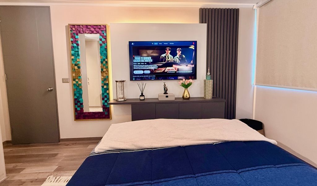 Arriendo hermosa y amplia habitación completamente amueblada, con cama de 2 plazas, 2 veladores con lámparas de espejo, smart TV NUEVO, baño privado, closets amplios, lavadora y secadora dentro del departamento, derecho a cocina, todos los gastos incluidos, Internet, gastos comunes, agua, luz, Netflix, Amazon, Disney, dispositivos de Alexa, privilegiada zona con mucha seguridad y la mejor conexión a pasos del metro Rojas Magallanes y Vicente Valdes, Líneas 4 y 5. Al lado de Líder Express, paradero al frente del condominio. Espacios comunes incluidos, Gym, Piscina, Parque infantil, conserjería, Quincho, E-Lockers. Busco persona que sea silenciosa, que no fume, que le guste el orden, en el departamento vivimos 2 hombres muy tranquilos y silenciosos que pasamos el día trabajando y siempre mantenemos todo en orden y limpio. Si buscas vivir en un sitio pacifico y cumples con estos requisitos mínimos contactame!
