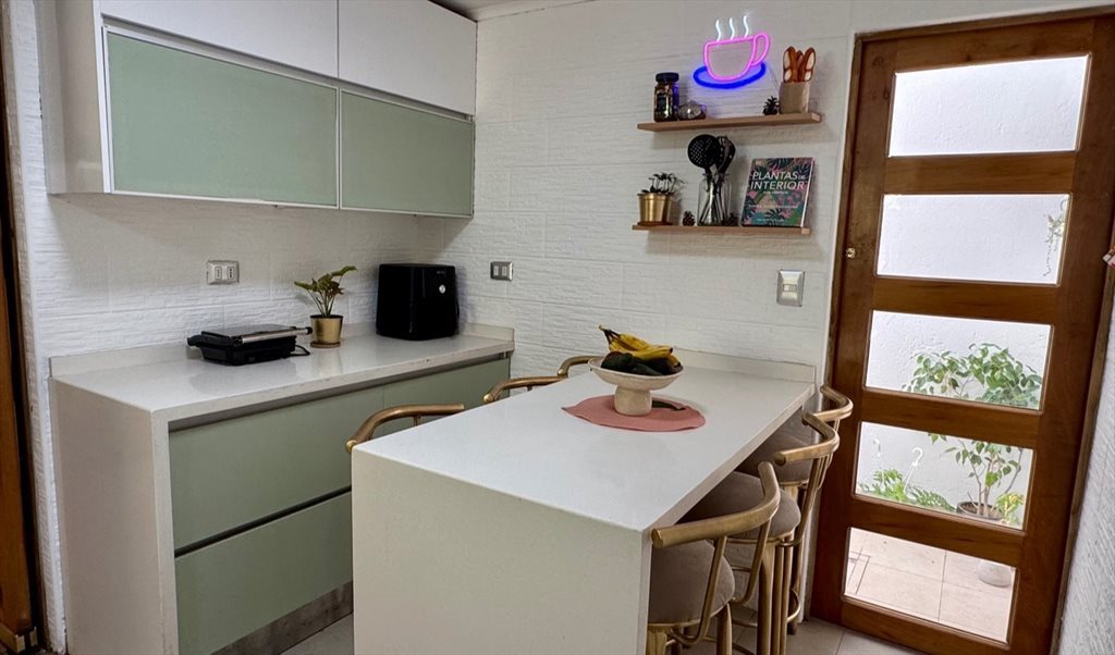 Es una casa completamente equipada con jardín.