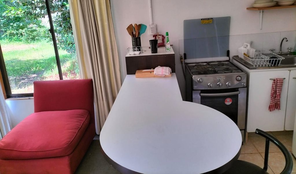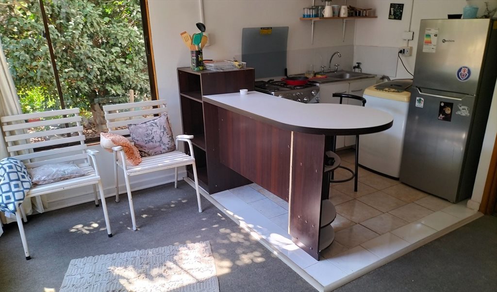 Joven profesional arrienda luminoso y cómodo departamento interior Amoblado, en barrio residencial de La reina, s pasos de comercio, bancos, cafés, supermercados, estaciones de metro Simon Bolivar, PPe de Gales y Castillo Velasco. El Dpto cuenta con una amplia habitación, escritorio independiente de dormitorio, baño, y cocina americana con una salita (cuenta con refrigerador, cocina y lavadora). Entrada independiente y gastos agua, luz, gas e internet incluidos.