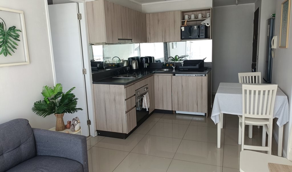 Arriendo dos habitaciones amobladas (350.000 c/u) una con cama de dos plazas y otra cama nido de 1/5 plazas, ambas con baño en suite, closet. El departamento está amoblado y equipado con cocina totalmente equipada, horno eléctrico, microondas, lavadora/secadora, Televisor, living y comedor y terraza. El edificio cuenta con dos piscinas, dos quinchos en azotea, sala de eventos, gimnasio, sala de cine. Valor incluye agua caliente por caldera.