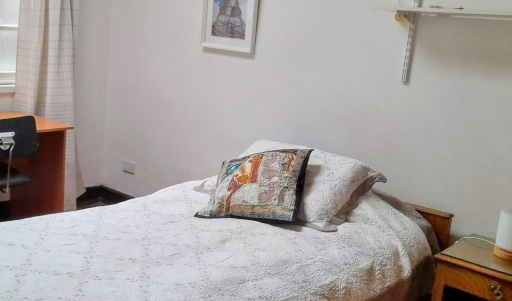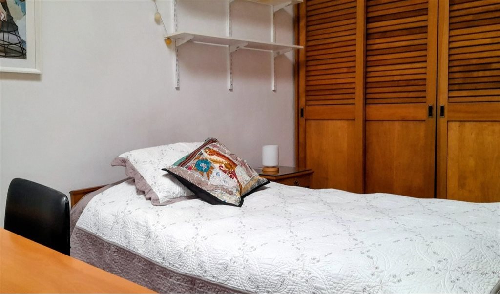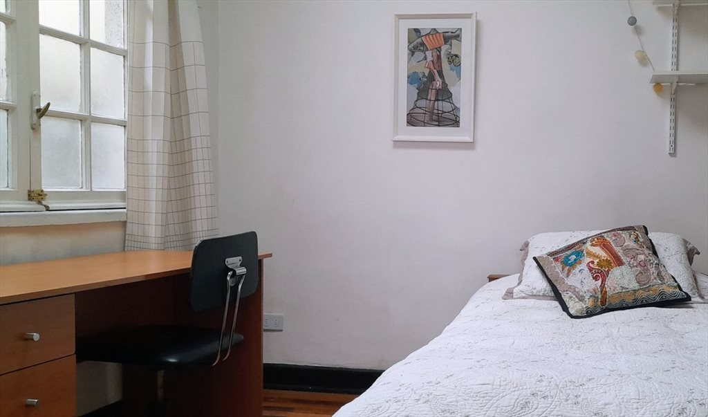 Dormitorio: 4,2 mts x 3 mts, cama de 1 plaza y media, mas ropa de cama.Tiene escritorio, estante y ropero grande. El baño se comparte con 1 persona. Incluye cuentas, derecho a cocina, lavadora e internet WIFI. A 10 min del metro, cercano a ciclovías y a una plaza con cafés y comercio. Mi casa es de 2 pisos, arriendo abajo (con espacios comunes) y vivo arriba. Cada uno tiene sus horarios pero también hay tiempo para compartir, si quieres.