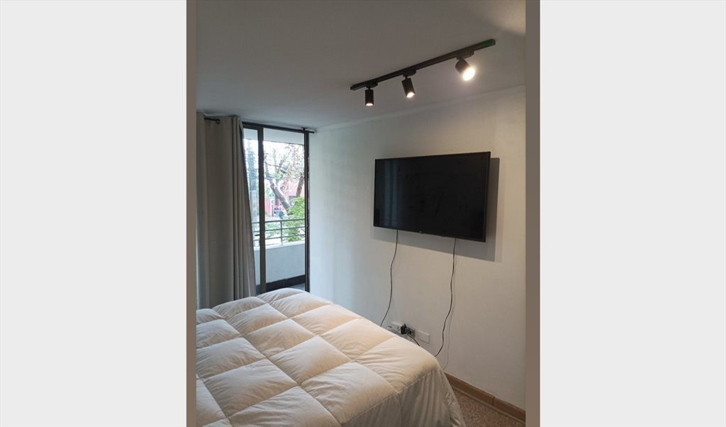 La pieza es grande tranquilamente caben una pareja, estudiantes si desean poner un escritorio, etc, busco un roomie tranquilo(a), ordenado, limpio, tengo una mascota que viene aveces y se queda conmigo, pero pasa el tiempo con su mamá.