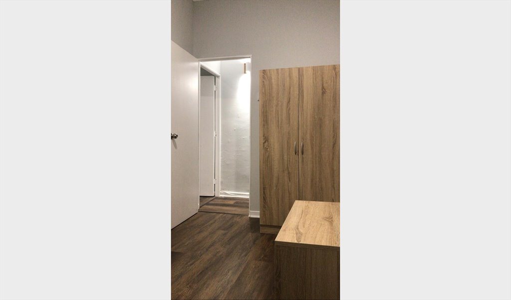 Piso vinílico, y closet.