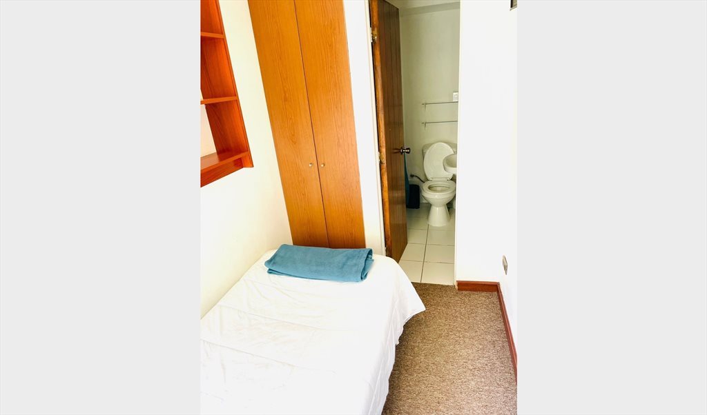 La habitación en arriendo es chica, con: