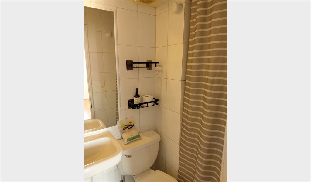 Se arrienda habitacion con baño personal a pasos de metro Escuela Militar ( 3 cuadras) con conectividad inigualable entre calle Colon y Vespucio Departamento con orientacion poniente , el departamento esta amoblado en espacios comunes con logia y lavadora , condominio cuenta con conserje 24 horas , piscina y jardines interiores . Vivo con mi gata de 10 años, edificio muy tranquilo , la mayoría de los dueños del edificio son personas adulta mayor que priorizan el silencio y el respeto comun