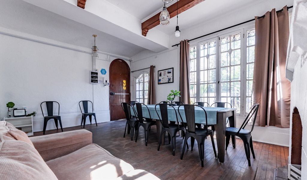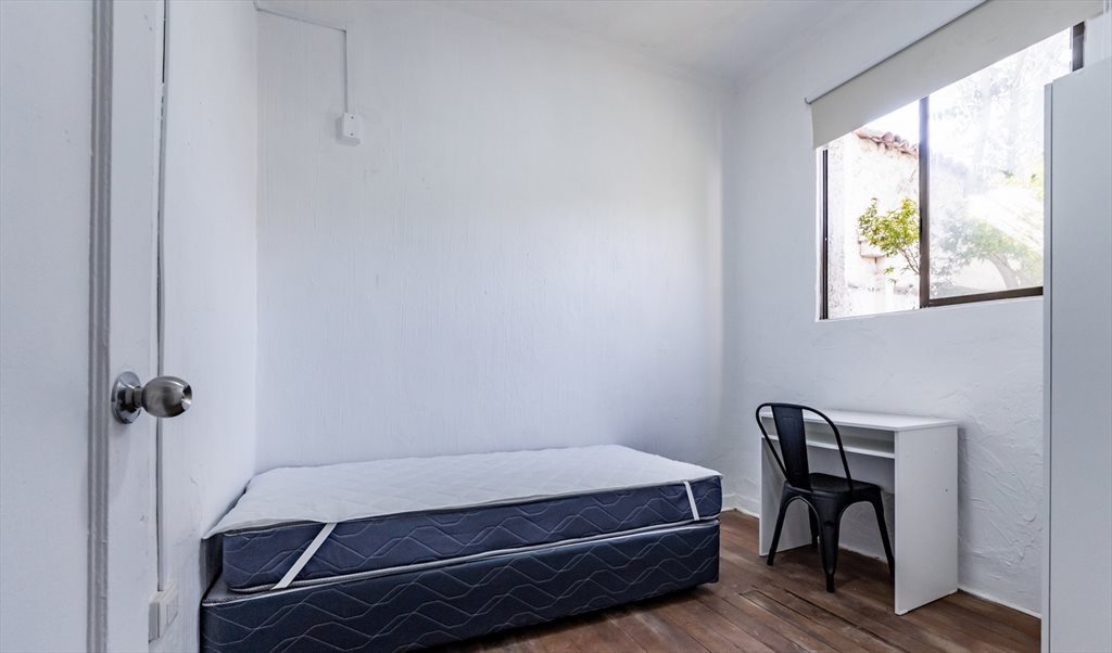 La residencia dispone de 16 habitaciones, 6.5 baños, cocina completamente equipada, living–comedor y amplios patios delantero y trasero, ofreciendo un ambiente ideal para estudiar, convivir y disfrutar de la vida universitaria.