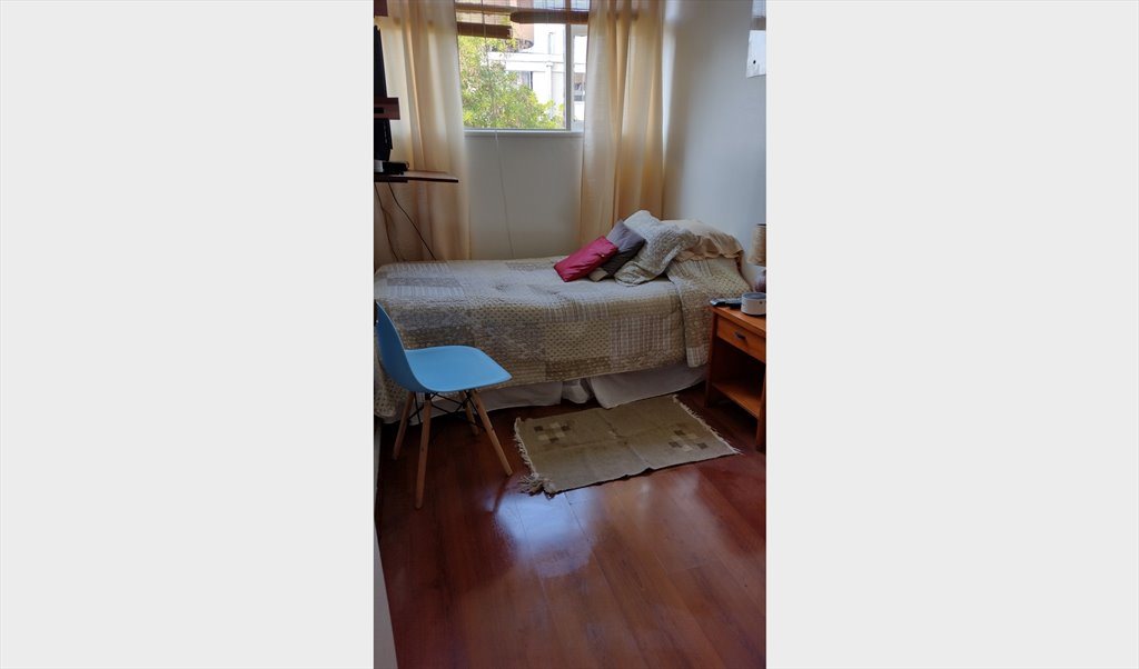 Es luminosa con baño privado, escritorio, ropa de cama limpia quincenal, amoblada, cable, TV,Wifi, aseo 2 veces por semana, lavado de la ropa de cama y personal, uso moderado de la cocina solo para lo mínimo, living y balcón como áreas de uso común.Si fuma , lo hace en el balcón. Vale $320.000 mensual ,Se arrienda mínimo por 3 meses. Además se cobra garantía de $150.000, la que no se abona al arriendo, toda vez q se devuelve luego que la persona se retira y se evalúa si se han producido daños.