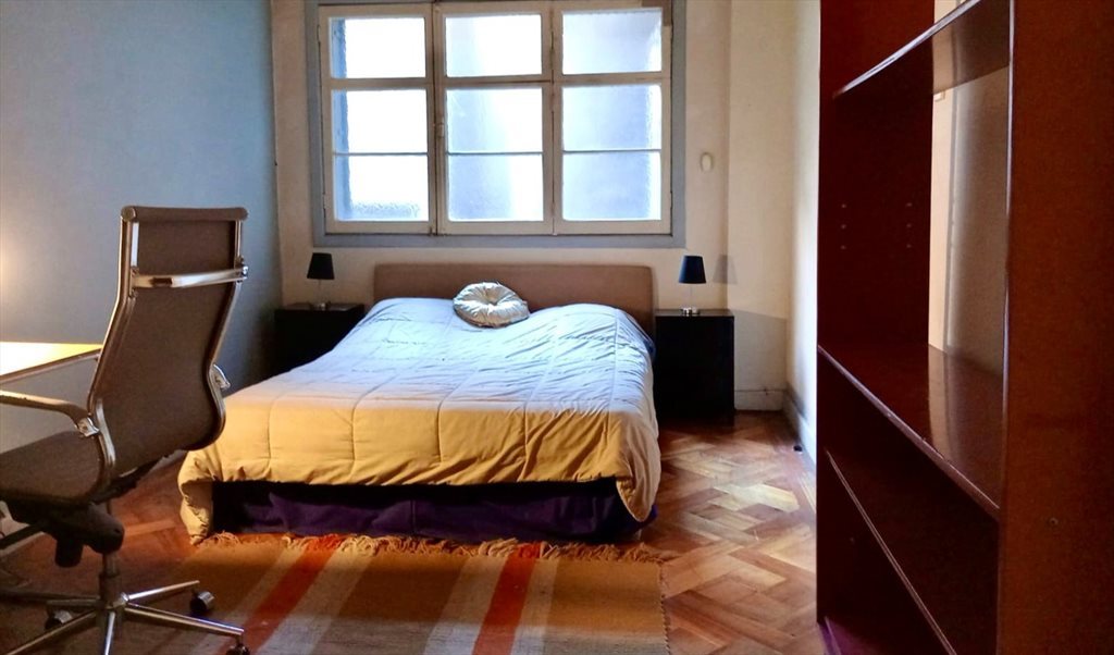 Tiene un gran escritorio para trabajar, cama matrimonial, librero con repisas, sillón y buen closet.