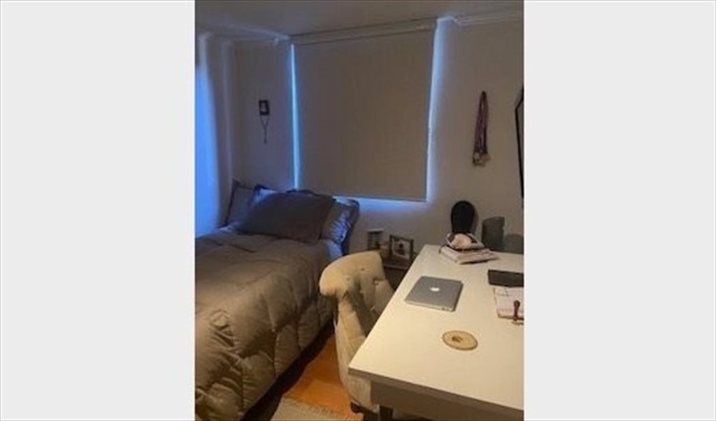 Dormitorio cuenta con: escritorio, tv/monitor, cama nido, closet amplio, velador. Valor de arriendo incluye cuentas y gastos comunes. RRSS: Susana Vásquez. (Se busca persona tranquila, con buenos hábitos, que no fume, y de valores).