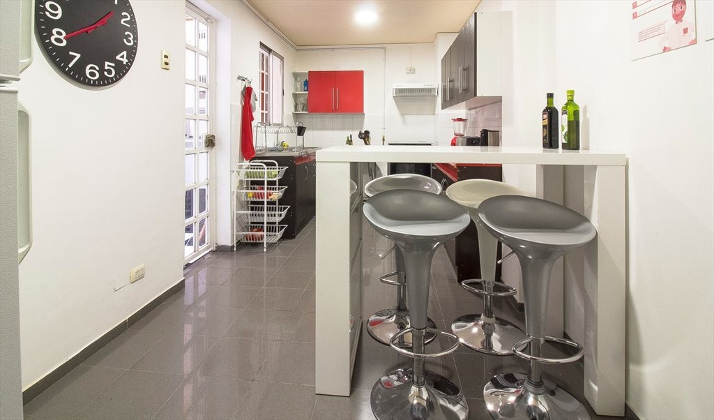 La casa tiene 2 pisos, living - comedor, cocina equipada, lavadora y secadora. Quiero que los espacios comunes sirvan para crear una buena onda entre los compañeros.