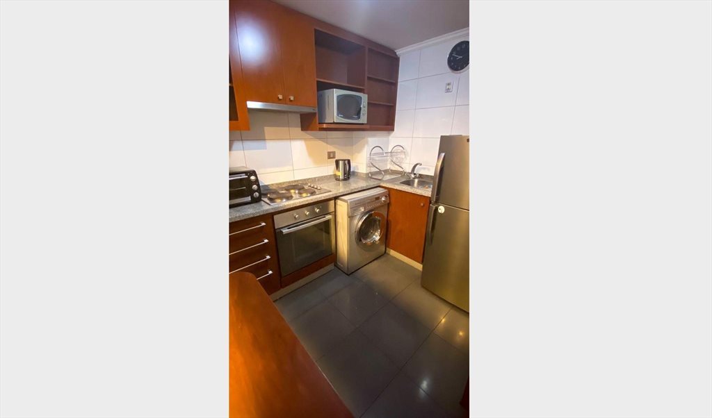 Moderno, amplio y silencioso departamento amoblado, con disposición poniente, excelente ubicación céntrica, locomoción cercana de buses y metros, a pocas cuadras de supermercados, bancos, servicios públicos, museos, restaurantes, bares, cafés, malls, parques y más para que disfrute de tu vida en Santiago centro
