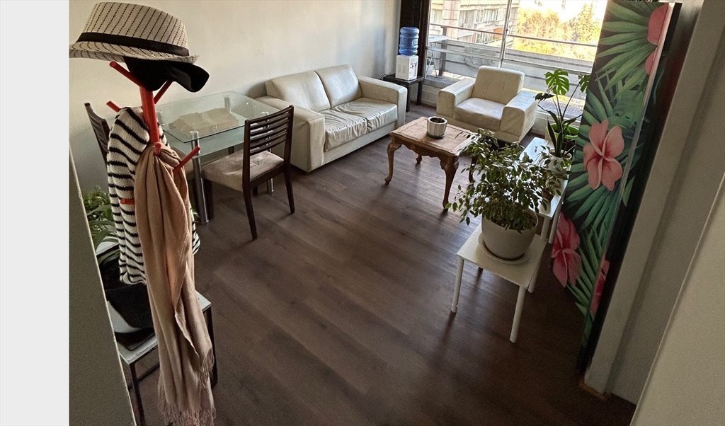 Se arrienda habitación amoblada en departamento compartido, ideal para estudiantes de intercambio. El departamento se encuentra a la salida del metro Universidad Católica, con supermercados a menos de 5 minutos y a pasos del pintoresco barrio Lastarrias. La habitación disponible está completamente amoblada, al igual que el resto del departamento, con acceso a una cocina equipada y una lavadora. Los servicios de wifi, luz, agua y gas están incluidos en el valor del arriendo. Se solicita un mes de garantía junto con el primer mes de arriendo.