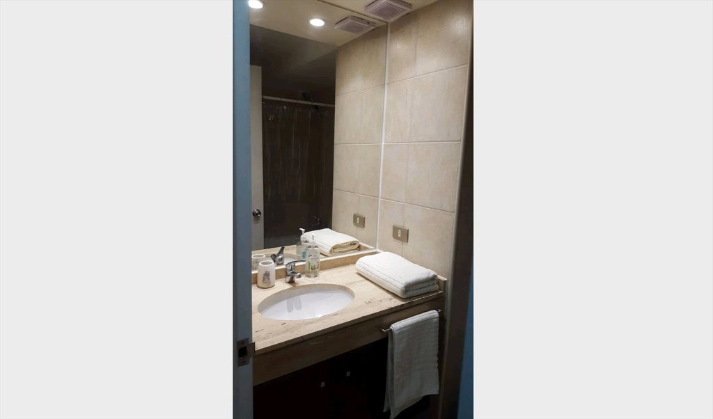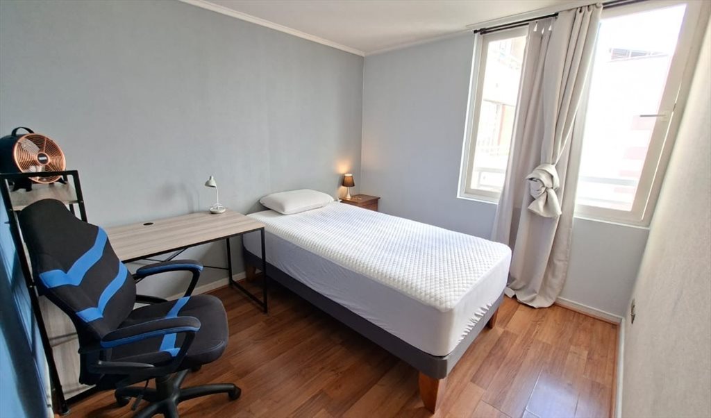 Habitación amoblada con baño privado en suite, cama nueva de 1 plaza y media, amplio closet, mesa de noche, lámpara de noche con niveles de luminosidad, ventilador, escritorio, lámpara touch de lectura con niveles de luminosidad en escritorio y doble cortinas black-out. Adicionalmente al valor del alquiler, se cobran gastos comunes y servicios básicos al iniciar el 2do mes de estadía, por un monto de $45.000.- por persona.