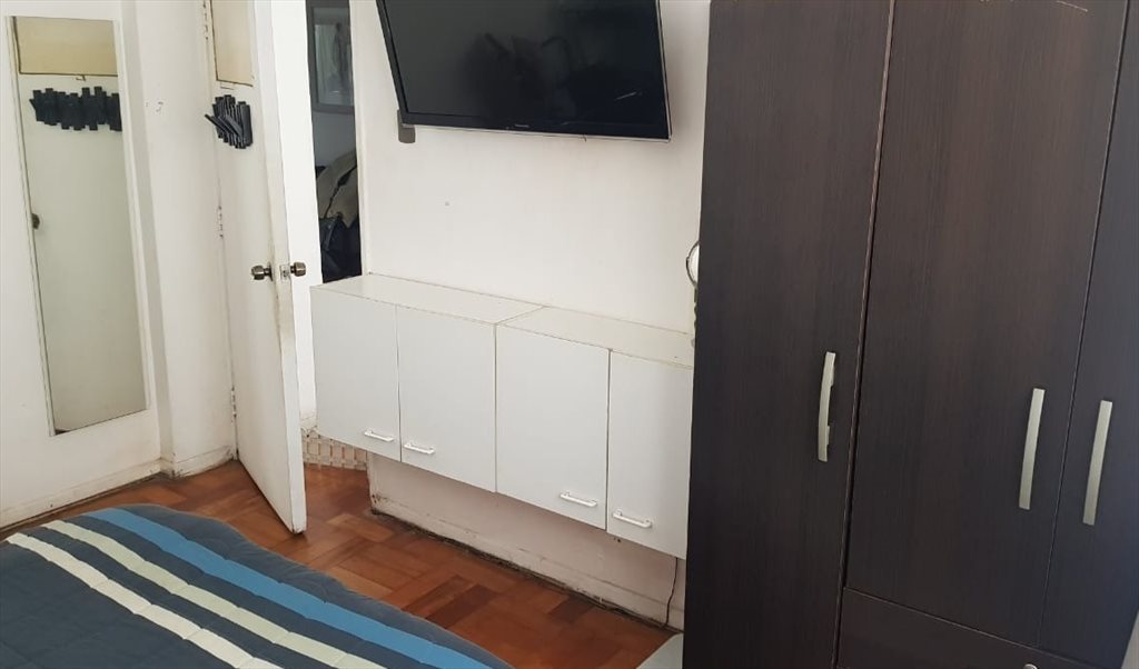 Aunque está a pasos de Alameda es muy silencioso por tener ventanas de Termo panel PVC. Las medidas de la Habitación es 3.80 Largo x 2.90 Ancho 2.75 Alto.