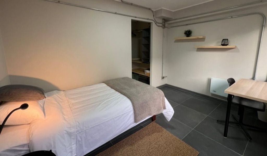 Habitación (13m²) con cama de 1,5 plazas, escritorio, almacenamiento y balcón. Baño compartido. Todas las comodidades incluidas: servicios básicos, internet, wifi, lavadora, ropa de cama. Acceso a cocina-comedor, terraza. Ambiente universitario convivencial. Metro a 5 minutos. 410€/mes.