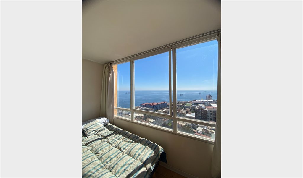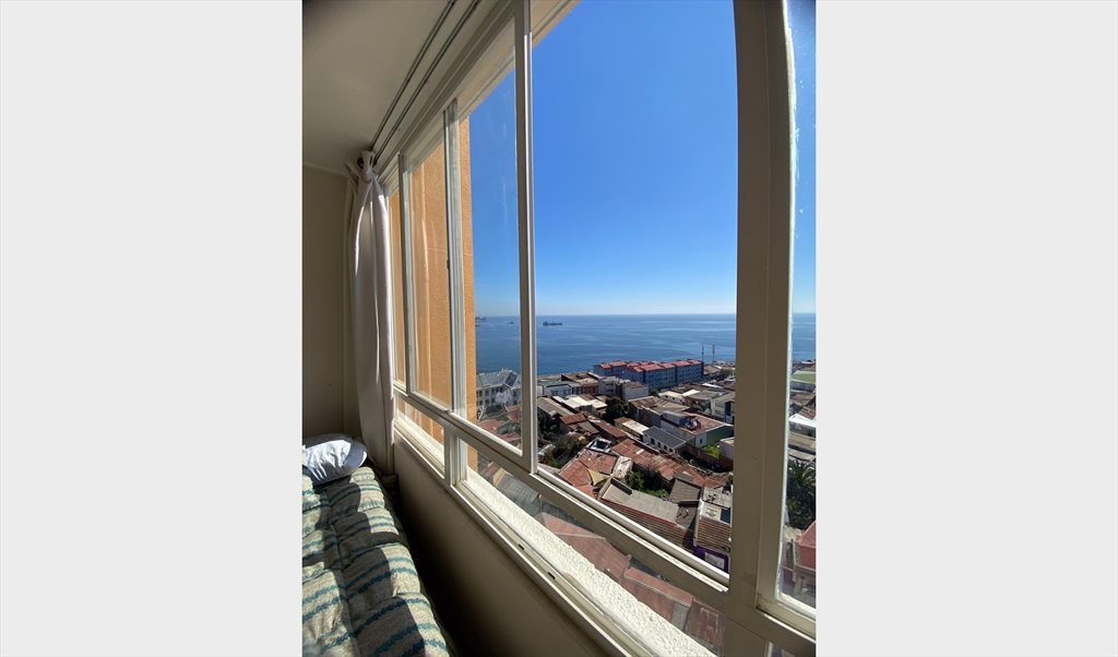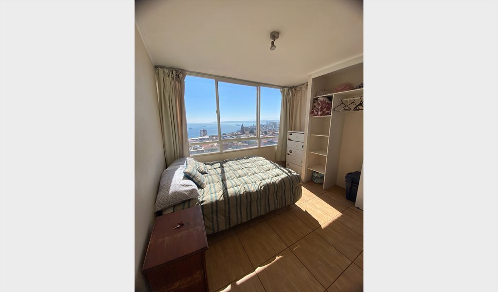 Habitación con hermosa vista a la bahía en cerro Barón, Valparaíso , super iluminada, baño privado. Cama de 11/2 plaza y amplio closet. Busco compañera limpia y ordenada que respete los espacios comunes, puede fumar pero en su dormitorio o balcón, que identifique a simple vista los detalles. Vivo con una perrita hermosa y bien portada.