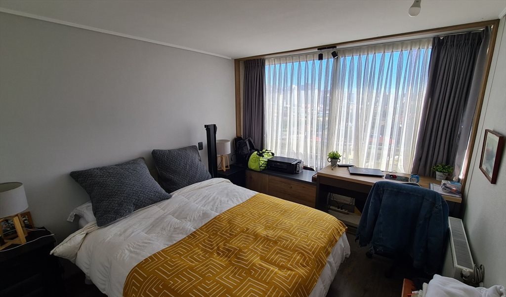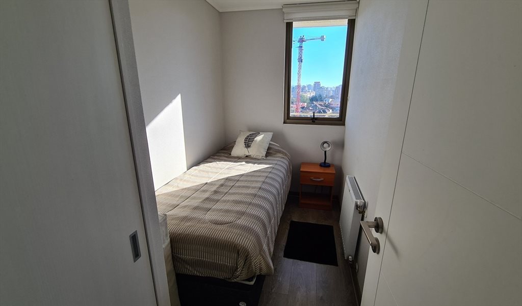 Habitación "NUEVA" dentro de un departamento ubicado en el Piso 9 con excelente vista, a dos cuadras de locomoción colectiva con toda la comodidad que uno desea tener. Internet, lavadora, baño pieza personal, sala de estar, balcón, televisor, estacionamiento para auto y bicicleta, Gimnasio y Sauna, etc.