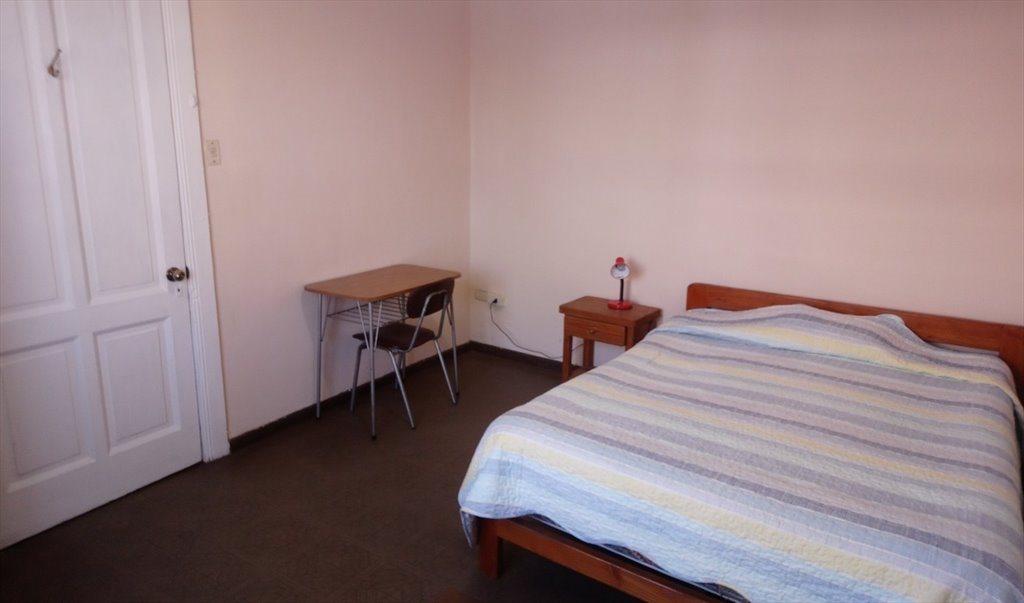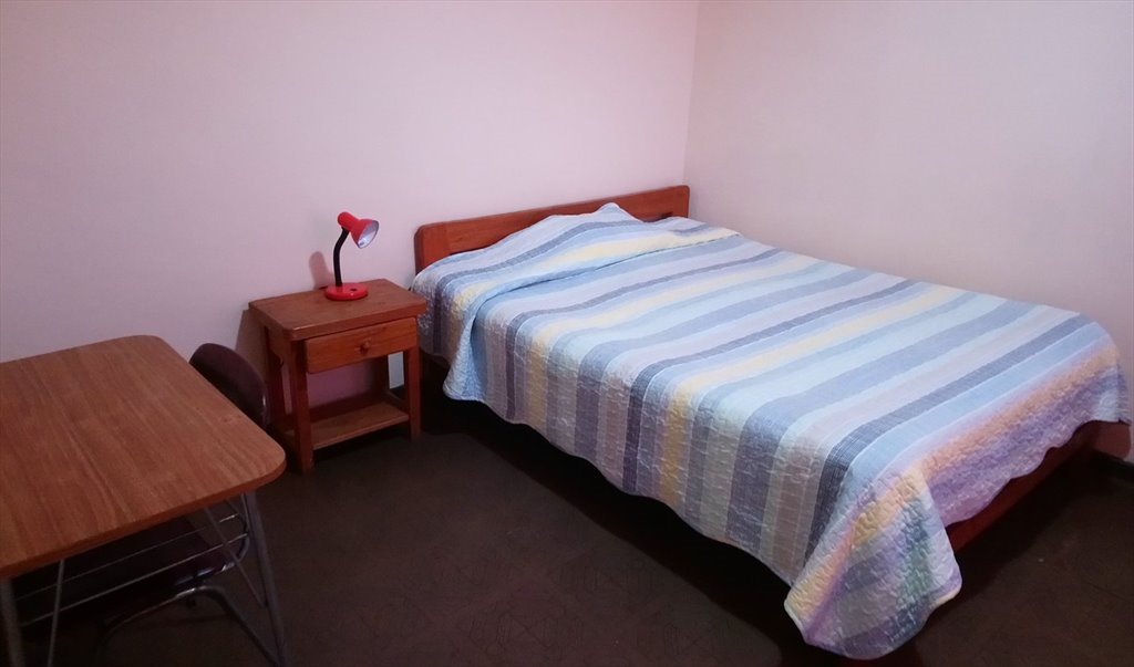 La habitación es bastante amplia y tiene cama de dos plazas, velador, un clóset.