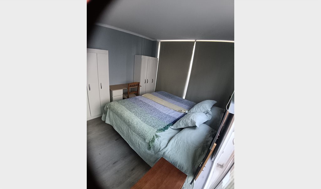 Se arrienda habitación grande con cama europea tamaño KING marca CIC Ortopedic (nueva), 2 clósets, escritorio con silla, velador y baño compartido.