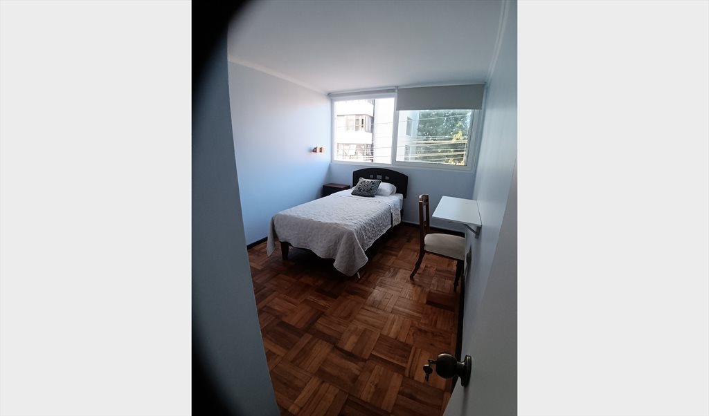 Se arrienda habitación grande con cama europea tamaño 1,5 plazas marca CIC Ortopedic (nueva), clóset grande, escritorio abatible con silla, velador y baño compartido con 2 chicos.