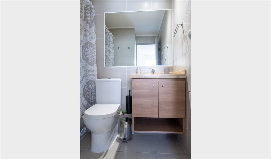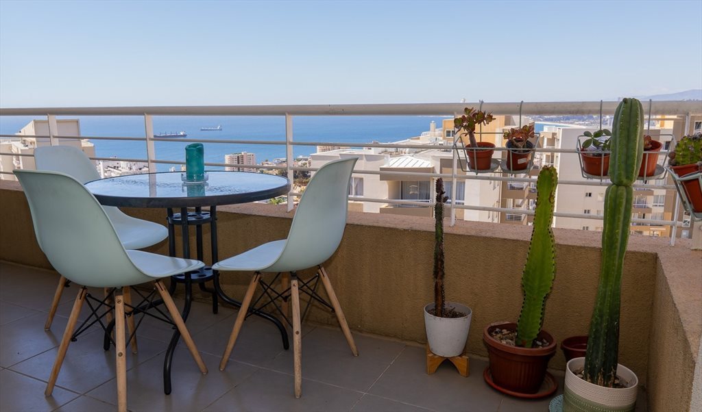 El condominio ofrece áreas comunes, entre las que destaca dos piscinas exterior y zonas ajardinadas, proporcionando espacios de recreación en el complejo. Además, el edificio cuenta con acceso controlado que entrega mayor tranquilidad a los residentes cuenta con conserjería 24/7. La terraza privada del departamento permite disfrutar de vistas panorámicas hacia la ciudad y el mar.