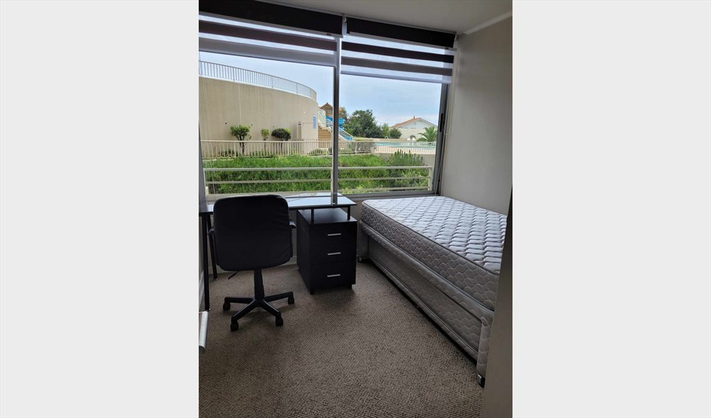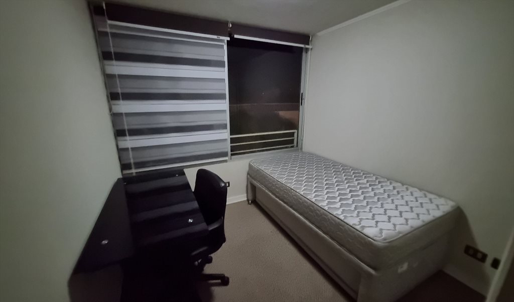 Se arrienda pieza con baño compartido en depto. Compartido. Buena iluminación, condominio cuenta con piscina, gimnasio, lavandería y quincho.