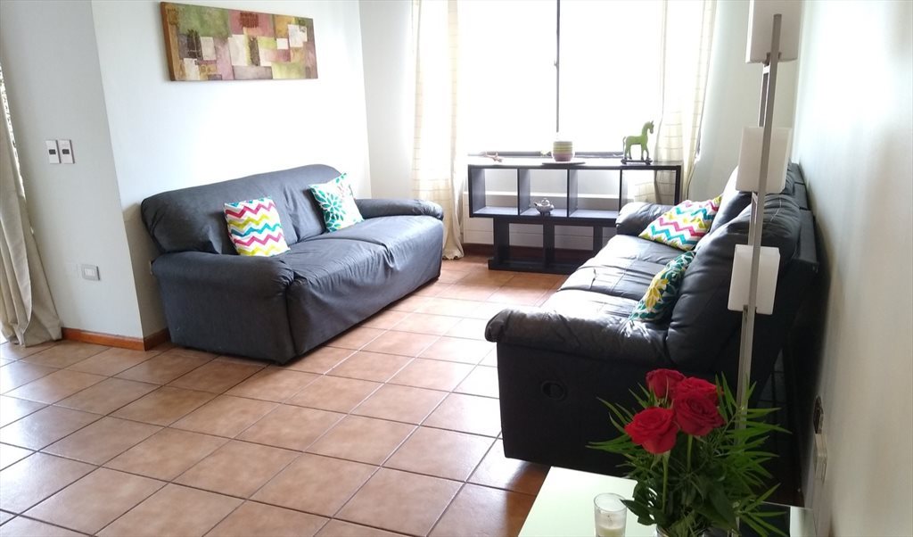 La tarifa mensual de CLP 385.000 incluye: electricidad, gas, agua fría y caliente, Internet Wi Fi 940 MB fibra óptica con dos repetidores, servicio de aseo en áreas comunes dos veces por semana, reposición semanal de artículos de aseo de cocina, mantenimientos. Cama de 1,5 plazas de ancho (105 cm) con base tipo box spring. No se entrega ropa de cama.