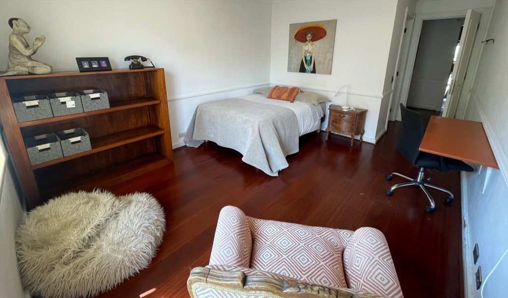 Ofrezco pieza amoblada (cama tamaño full) con walk in closet y baño en suite. Incluido el aseo, cuentas y lavado de ropa blanca. Barrio Las Nieves en Vitacura. Estacionamiento conversable.